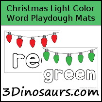 Christmas Lights Color Word Playdough Mat Printable contains 11 pages:
