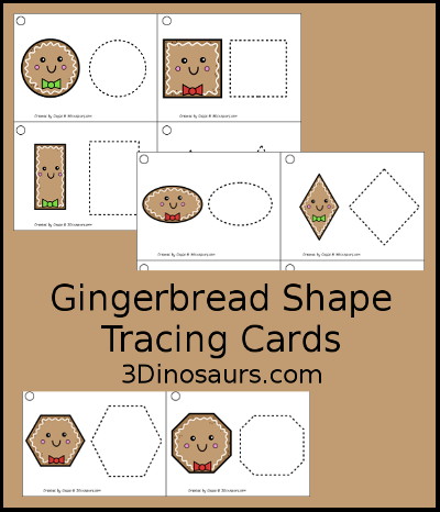 Gingerbread Shape Tracing Card Printables contains 3 pages: