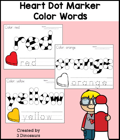 Heart Dot Marker Color Word Printable contains 24 pages: