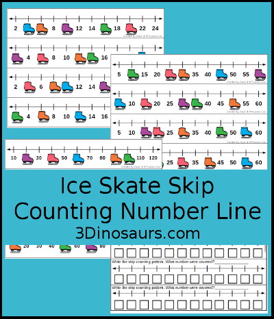 Ice Skate Skip Counting Number Line Printable contains 4 pages: