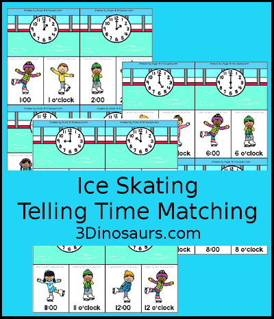 Ice Skating Telling Time Matching Printable contains 3 pages: