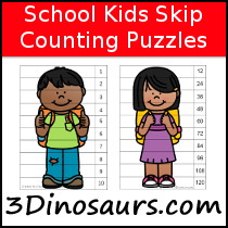 School Kids Skip Counting Puzzle Set Printables contains 37 pages: