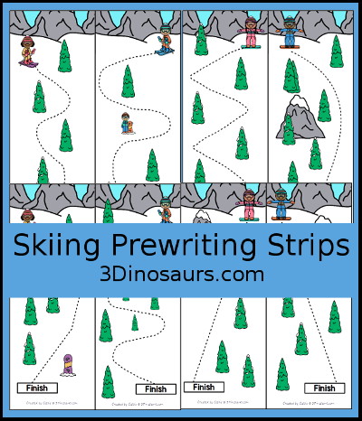 Skiing Prewriting Strips Printable contains 5 pages: