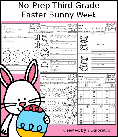 Spring Learning: Third Grade Easter Bunny Week Printables contains 22 pages: