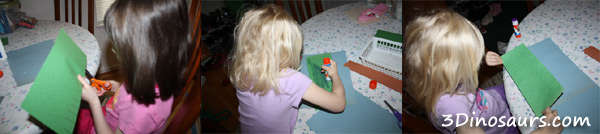 Cut the lines on the green paper and then glue it to the blue paper. Making sure not to glue down the area that was cut.