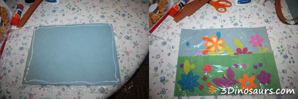 Cut the plastic wrap to the size of the paper. Glue it to the back.