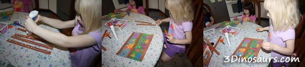 Glue the 6 brown strips of construction paper on the picture.
