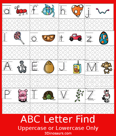 - ABC Letter Find - It has ABC finds for uppercase or lowercase letters only. It also has tracing for the letter you are looking for.