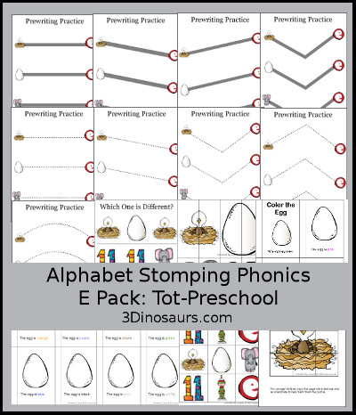 Alphabet Stomping Phonics E Pack - Tot-Preschool contains 20 pages: