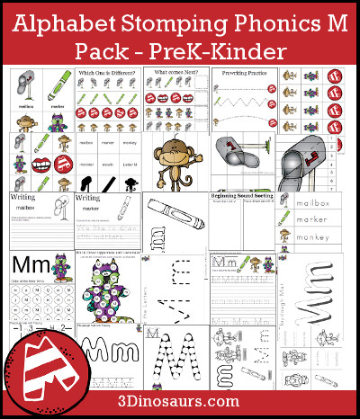 Alphabet Stomping Phonics M Pack - PreK-Kinder contains 30 pages:
