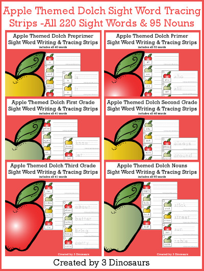 Apple Sight Words & Nouns Tracing & Writing Strip Bundle