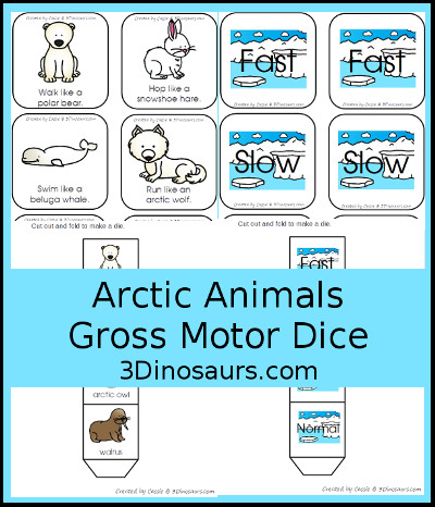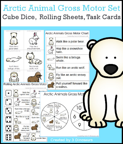 - Rolling Arctic Animals Gross Motor – Two movements to match each die roll