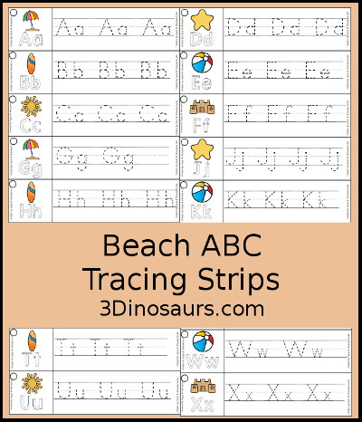 Beach ABC Tracing Strip Printable contains 10 pages: