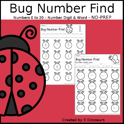 Related tags: Number Printables, First Grade, Kindergarten, PreK, Bugs