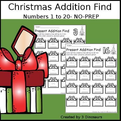 - Presents with addition to solve and color by the number.