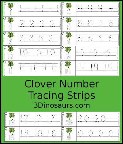 Clover Number Tracing Strips contains 8 pages: