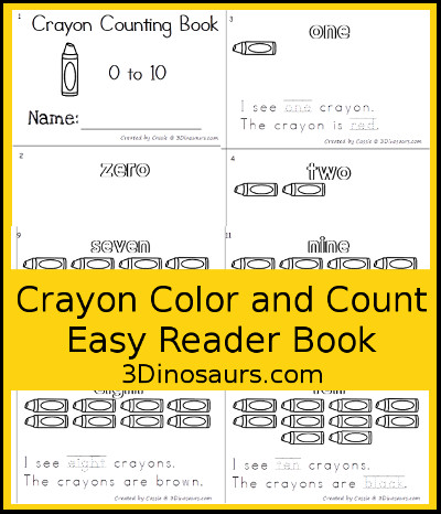 Crayon Color and Number Word Counting Book Printable contains 6 pages: