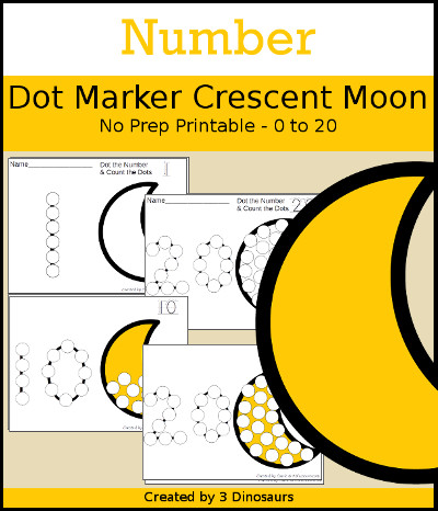 Crescent Moon Number Dot Marker & Counting contains 43 pages: