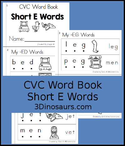 - 1 CVC short E word family on each page
