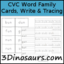 CVC Word Family Cards, Writing & Tracing contains 230 pages:
