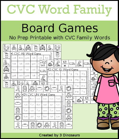 Click on the files below to download your copy of the CVC Word Family Games Printables.