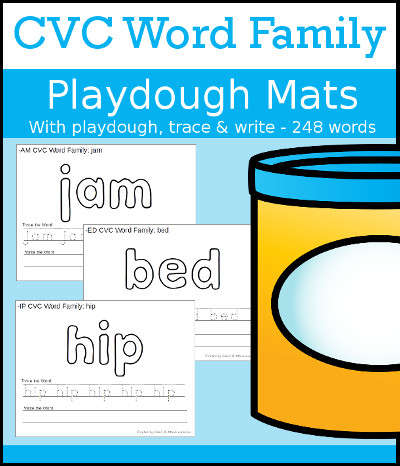 Click on the files below to download your copy of the CVC Word Family Word Playdough Mats With Tracing.