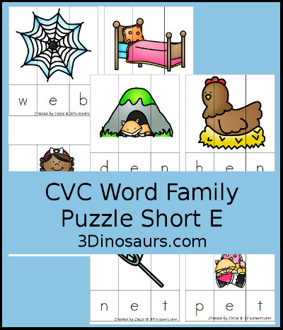 CVC Word Family Puzzles Short Vowel E contains 2 pages: