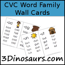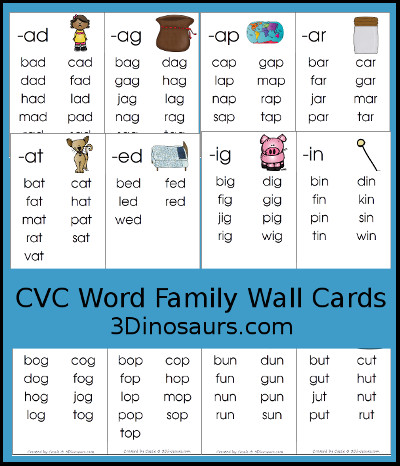 - CVC Words families: -ad, -ag, -am, -an, -ap, -ar, at, -ed, -en, -et, -ig, -in, -ip, -it, -og, -op, -ot, -ow, -ox, -ug, -un, & -ut