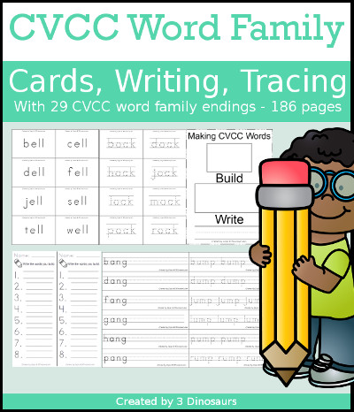 CVCC Word Family Cards, Writing & Tracing contains 181 pages: