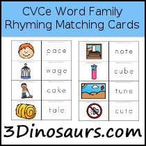 - 1 CVCe picture and 1 CVCe word matching card per ending