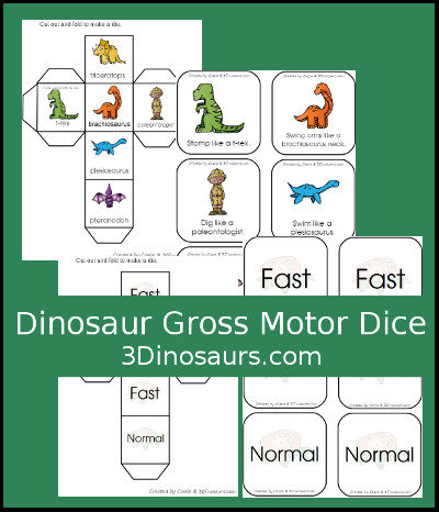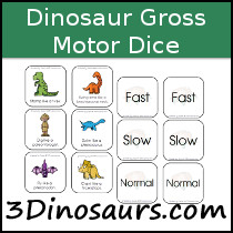 - Rolling Dinosaur Gross Motor – Two movements to match each die roll
