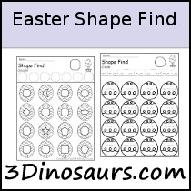 Click on the files below to download your copy of the Easter Shape Find Printable.