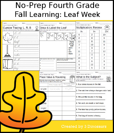 Related tags: Fall Learning: Leaf Week, No-Prep Grade Level Weekly Packs, Fourth Grade, Fall