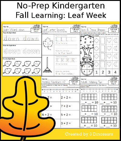 Related tags: Fall Learning: Leaf Week, No-Prep Grade Level Weekly Packs, Kindergarten, Fall