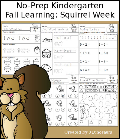 Fall Learning: Kindergarten Squirrel Week - No-Prep