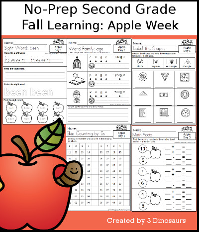 Fall Learning: Second Grade Apple Week - No-Prep contains 22 pages: