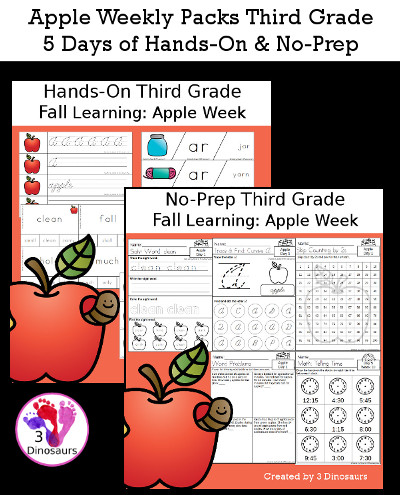 What you will find in the Third Grade Apple Hands-On Weekly Pack