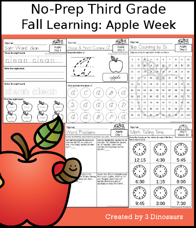 Fall Learning: Third Grade Apple Week - No-Prep contains 22 pages: