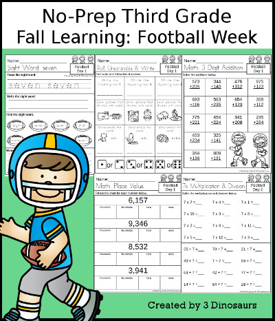 Fall Learning: Third Grade Football Week - No-Prep contains 22 pages: