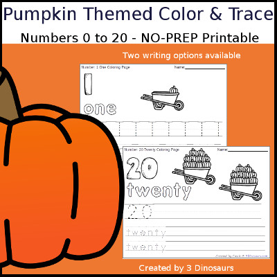 Pumpkin Themed Number Color & Trace contains 43 pages: