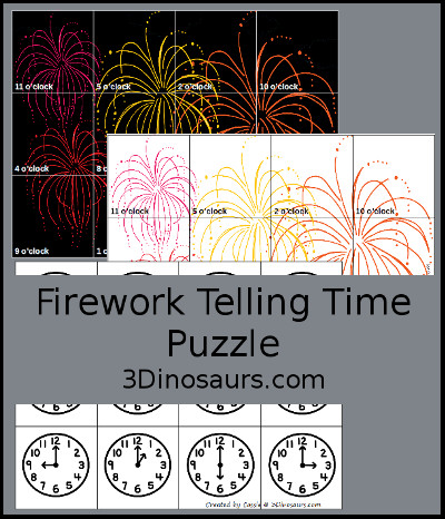 Fireworks Telling Time Puzzle contains 3 pages: