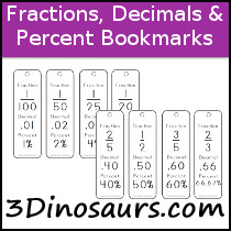 Fractions, Decimals, and Percents Bookmarks contains 5 pages: