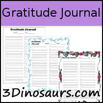 You have 10 different themed pages for writing a gratitude journal that can be used with adults or kids.
