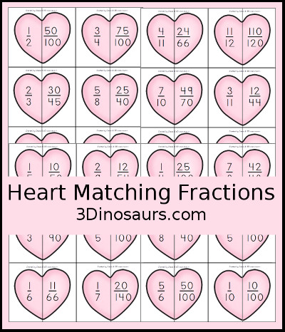 Heart Fraction Matching Printable