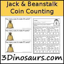 Jack and the Beanstalk Counting Coins Printable contains 4 pages: