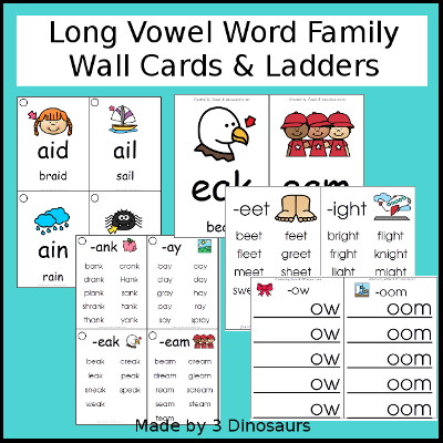 Long Vowel Word Family Wall Cards & Ladder Selling Set Printable contains 45 pages: