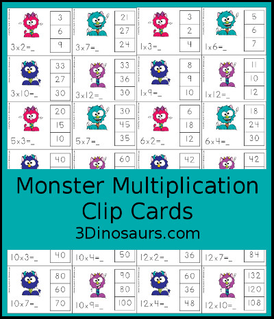 Monster Multiplication Clip Cards contains 12 pages: