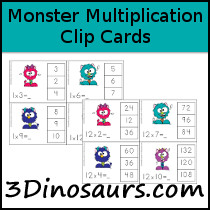- A fun monster on each card with multiplication equation with 3 numbers for answer