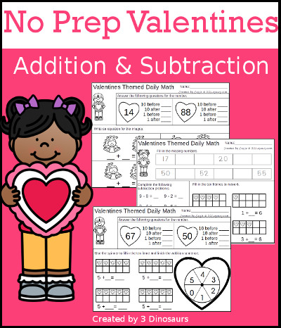 No-Prep Valentines Themed Addition & Subtraction contains 36 pages: