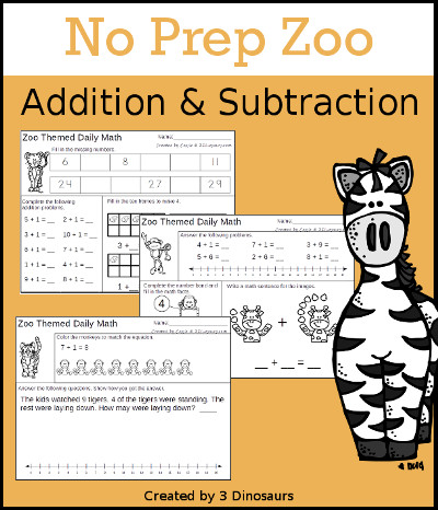 No-Prep Zoo Themed Addition & Subtraction contains 36 pages: